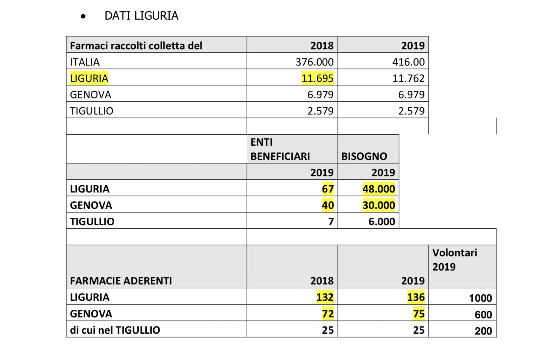 Buonissimi i numeri per quanto riguarda la Liguria: in un solo giorno, presso le 136 farmacie che hanno aderito (sono state 4500 in tutta Italia), di cui 75 nella sola provincia di Genova e 25 nel Tigullio, sono stati raccolti 11.762 farmaci, con un leggero aumento rispetto al dato del 2018 (11.695).