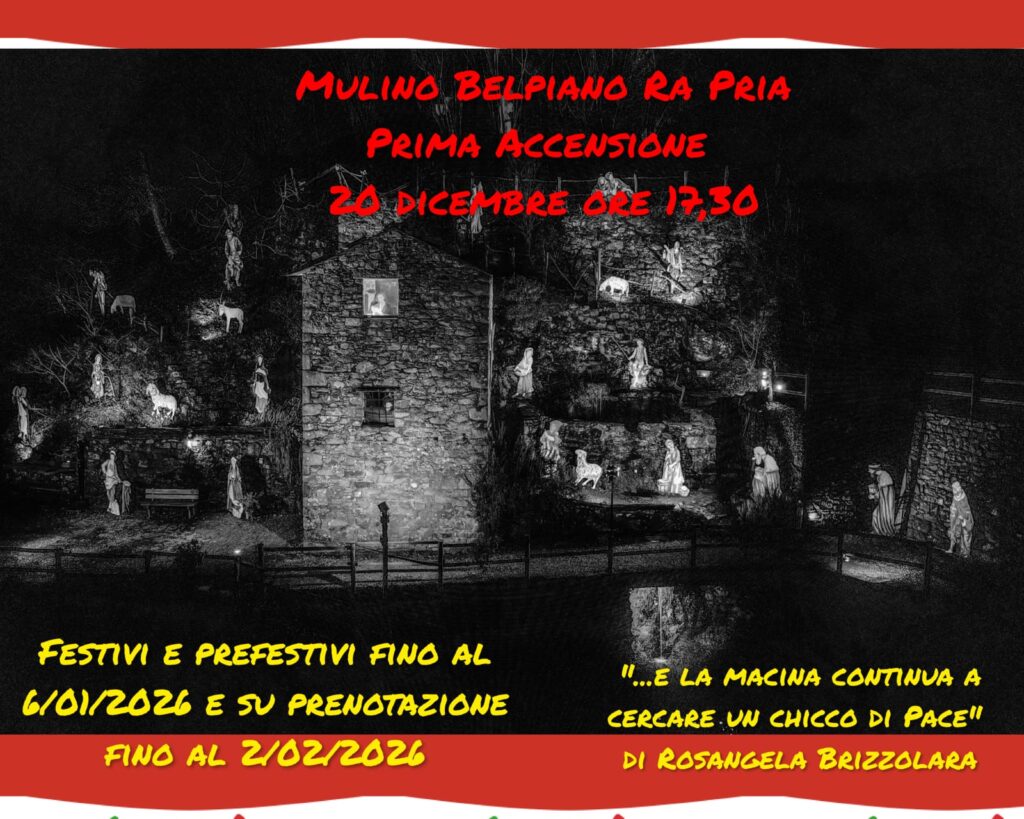 “Per il Presepe 2025 saranno anche conclusi gli interventi di cui al Bando Architettura del Paesaggio PNRR che ne completano il contesto con un ampio recupero ambientale e paesaggistico, nonché l’installazione di un sistema multimediale che consente di superare le barriere architettoniche per la visione della “magica stanza del mugnaio” per anziani e diversamente abili, qualificandone così la fruibilità e l’accoglienza: un mulino ed un Presepe non per tanti ma per tutti” conclude Sbarbaro. Le accensioni continueranno nei giorni festivi e prefestivi fino al 6 gennaio.