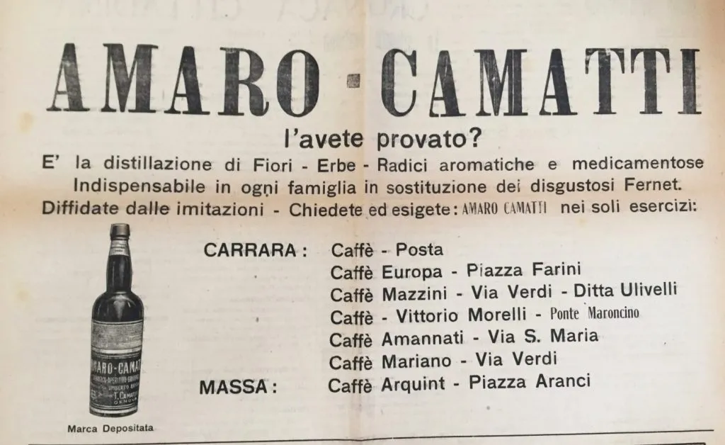 Camatti si fa gustare, si fa conoscere, viene apprezzato anche nelle altissime sfere. “Nel 1935 la ditta produttrice venne autorizzata a fregiarsi del titolo di ‘Fornitore della casa di Sua Altezza Reale, il Principe di Piemonte’ e di collocare sull’insegna dello stabilimento lo stemma principesco”. Dagli illusori fasti del ‘Bell’Umberto (poi Re di Maggio)’ alla catastrofe il passo fu breve.