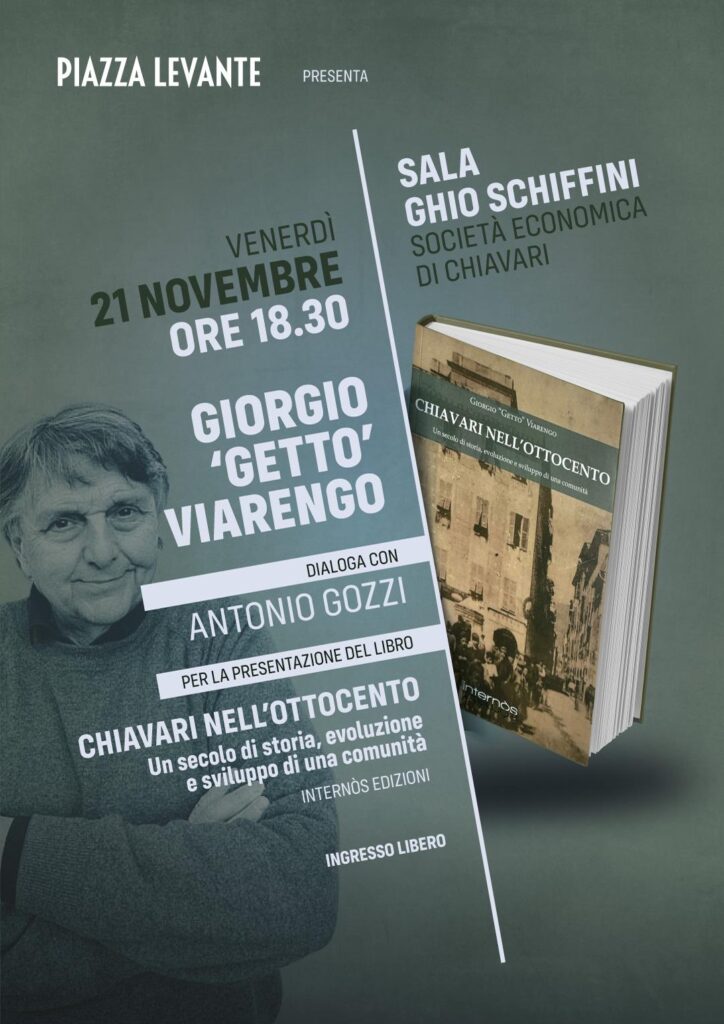 Per molti dei suoi numeri passati, ‘Piazza Levante’ ha ospitato con grande piacere la rubrica su Chiavari e l’Ottocento, a firma di Giorgio ‘Getto’ Viarengo. Ora, quel ciclo di interessanti articoli è diventato un libro, che sarà presentato venerdì 21 novembre, alle ore 18,30, presso la Sala Ghio Schiffini della Società Economica di Chiavari, in via Ravaschieri 15, a ingresso libero.