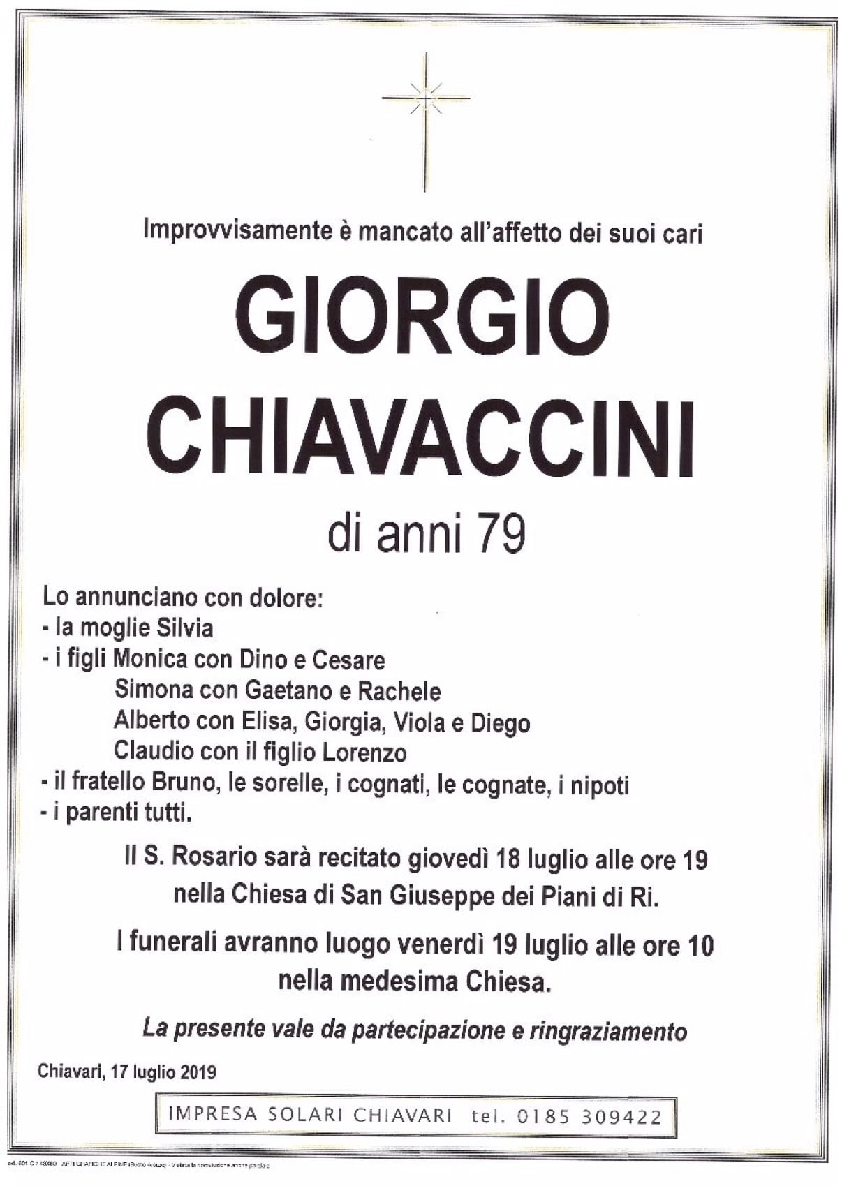 Chiavari, è mancato Giorgio Chiavaccini