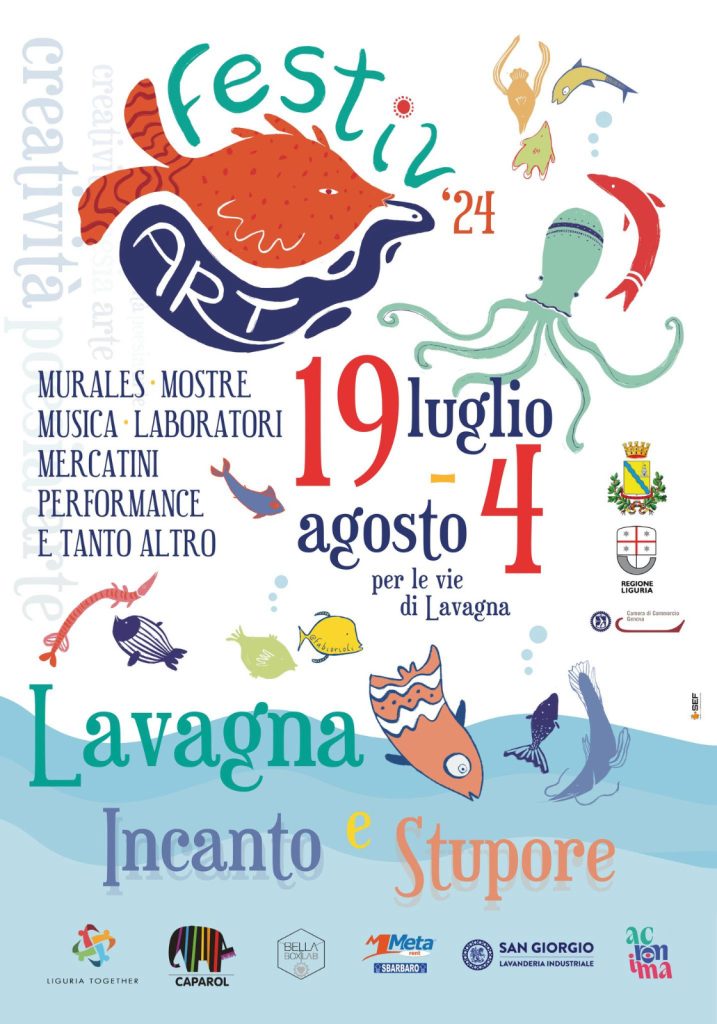 Da venerdì 19 luglio a domenica 4 agosto torna a Lavagna “Festivart”, il festival estivo di arte, musica e poesia. La manifestazione propone mostre, eventi, visite guidate, performance, concerti, laboratori per bambini e molto altro. Calendario denso di appuntamenti, sempre all’insegna della creatività: dal contest dedicato alla musica di strada, al teatro di figura, ai murales, alla fotografia, ai bagni di suono. Inaugurazione venerdì 19 luglio al Porticato Brignardello con “Artshow II”, una serata di arte e musica.