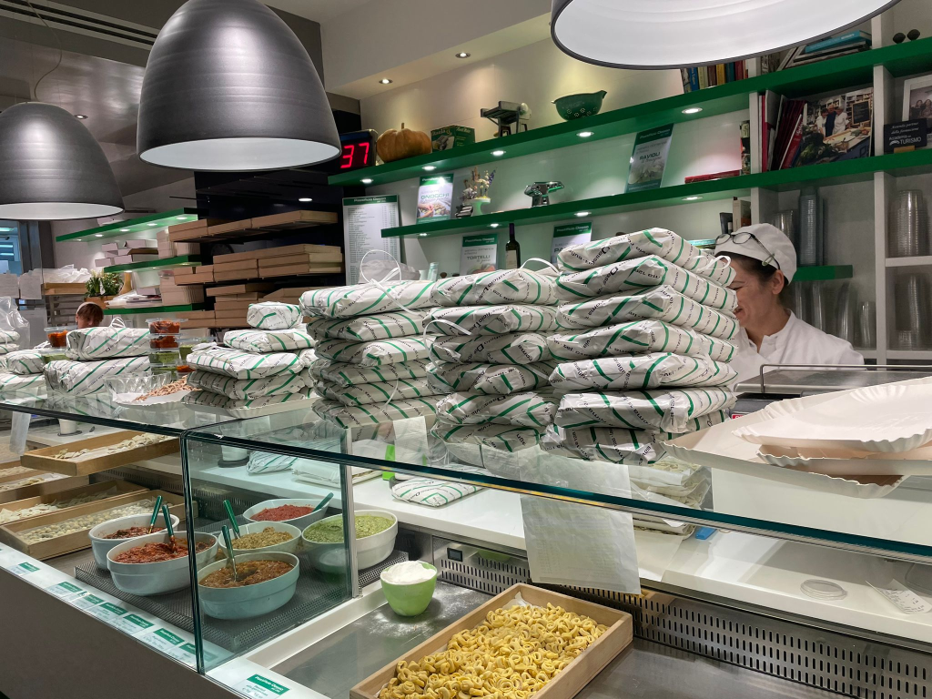 Per cosa è rinomato un pastificio? Per la pasta fresca, direbbe Lapalisse. Mettiamo l’accento sull’aggettivo perché la sensazione di purezza, originalità, naturalezza, freschezza diventa convinzione non appena si mette piede all’interno del negozio in via Roma 128 a Lavagna. Il nuovo modernissimo design colloca il banco vendita di sbieco rispetto all’entrata, il cliente ha di fronte invece la vetrata dalla quale si intravedono, in una teoria diagonalmente propositiva, i tavoli e i macchinari dove si confezionano i prodotti che immediatamente dopo vengono sistemati negli espositori da presentare al pubblico. Trasparenza ma anche reminiscenza della catena di montaggio: dai materiali di base al manufatto, tutto avviene sotto lo stesso tetto.