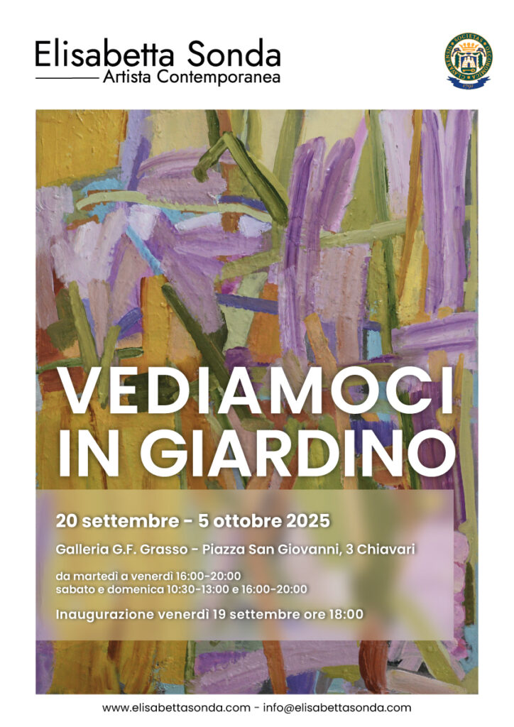 Ultimi giorni per visitare la bella mostra di Elisabetta Sonda, ‘Vediamoci in Giardino’ presso la Galleria Grasso a Chiavari. La mostra, infatti, chiude il 5 Ottobre.