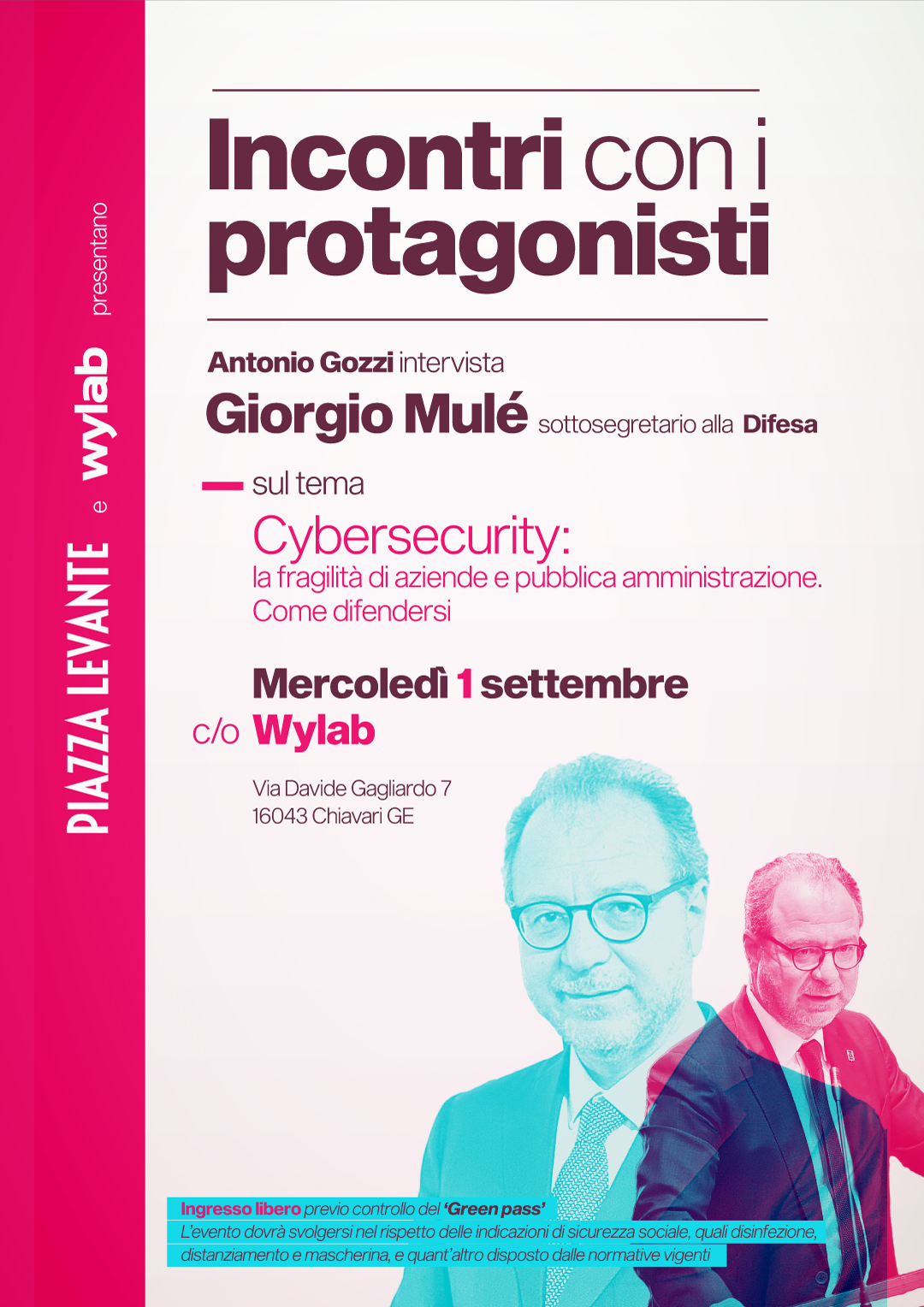 Mercoledì 1° settembre nel pomeriggio (alle ore 16,30) Giorgio Mulé, Sottosegretario alla Difesa, sarà ospite di Wylab e ‘Piazza Levante’.
