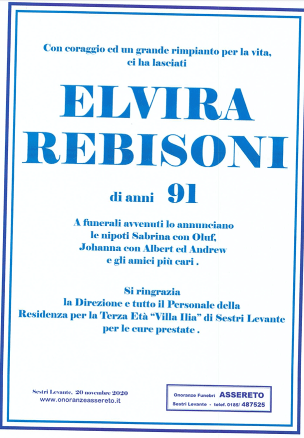 Sestri Levante, addio a Elvira Rebisoni